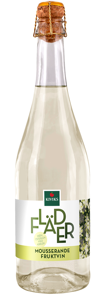 Kiviks Musteris Fläderblomsvin 75 cl 0,5% vol. Ett halvtorrt alkoholsvagt mousserande fruktvin med smak och doft av fläderblom. Serveras väl kylt som aperitif. Tillverkas i vårt vinhus på Österlen.